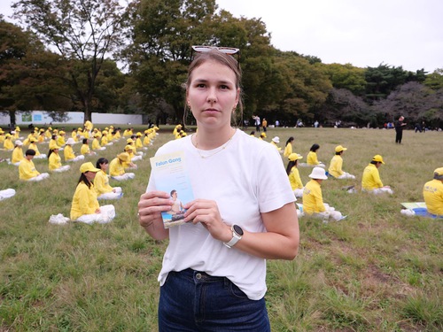 (Minghui.org) Praktisi Falun Dafa berlatih di Taman Yoyogi pada 12 Oktober 2025. Hari itu merupakan hari kedua dari tiga hari akhir pekan. Warga setempat dan wisatawan berhenti untuk menonton, berbincang dengan praktisi, dan mempelajari tentang Falun Dafa. Banyak yang mengecam penganiayaan Partai Komunis Tiongkok terhadap Falun Dafa dan menyatakan dukungan mereka terhadap upaya praktisi untuk mengakhiri penganiayaan tersebut.