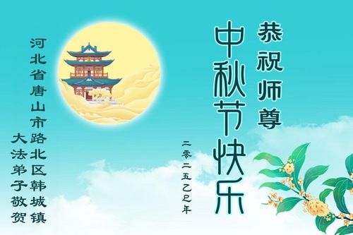 Praktisi Falun Dafa dari Kota Tangshan dengan Hormat Mengucapkan Selamat Merayakan Festival Pertengahan Musim Gugur kepada Guru Li Hongzhi (21 Ucapan)