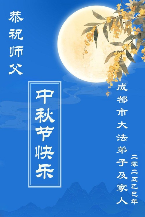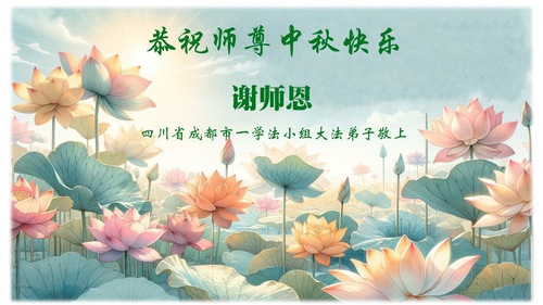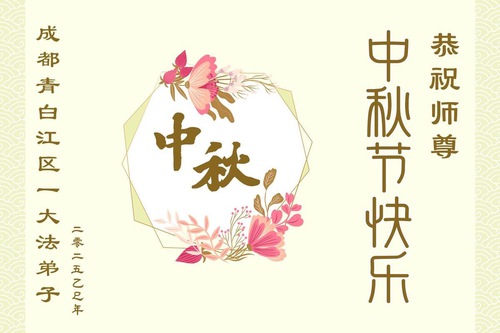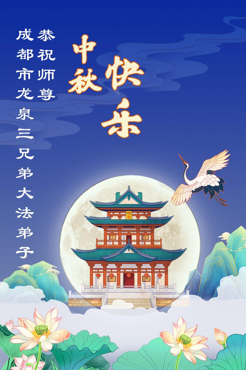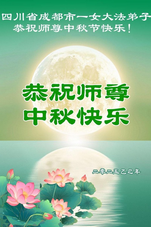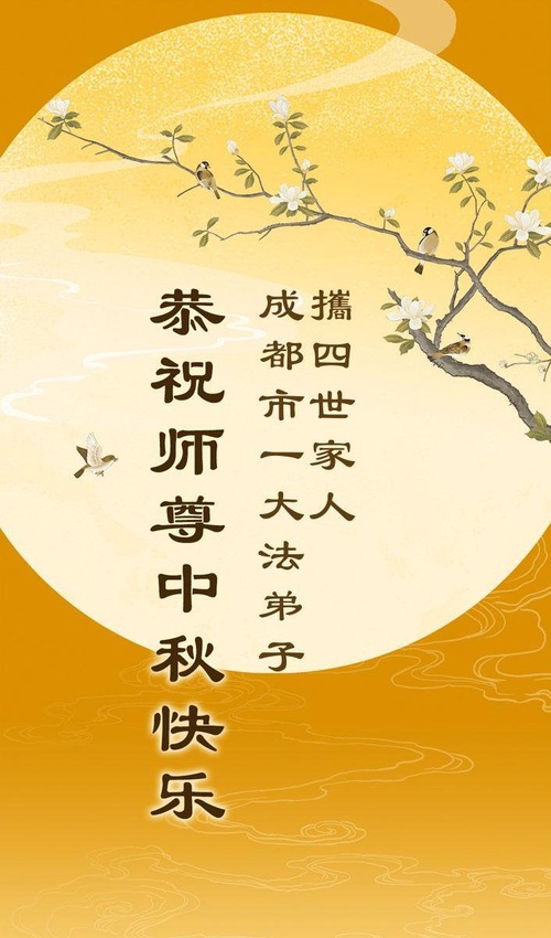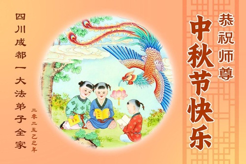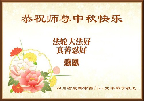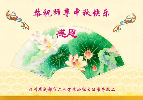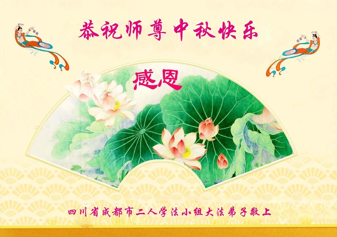 Praktisi Falun Dafa dari Kota Chengdu dengan Hormat Mengucapkan Selamat Merayakan Festival Pertengahan Musim Gugur kepada Guru Li Hongzhi (20 Ucapan)