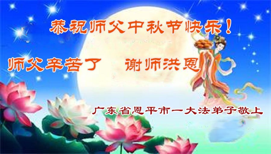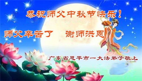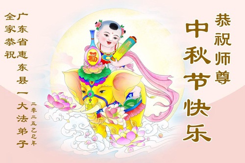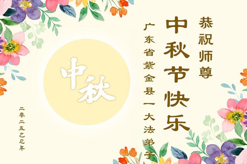 Praktisi Falun Dafa dari Provinsi Guangdong dengan Hormat Mengucapkan Selamat Merayakan Festival Pertengahan Musim Gugur kepada Guru Li Hongzhi (19 Ucapan)