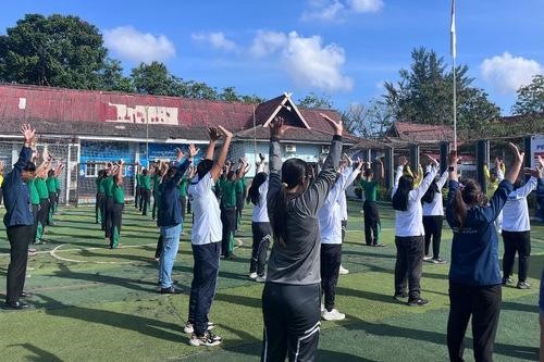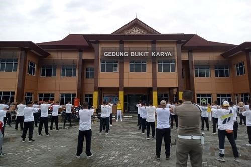 Kegiatan dilanjutkan dengan latihan bersama yang diikuti sekitar 45 anggota dan staf Satuan Polisi Pamong Praja.