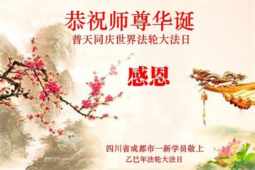 Praktisi Baru Falun Dafa di Tiongkok Mengucapkan Selamat Ulang Tahun kepada Guru Terhormat dan Merayakan Hari Falun Dafa Sedunia!