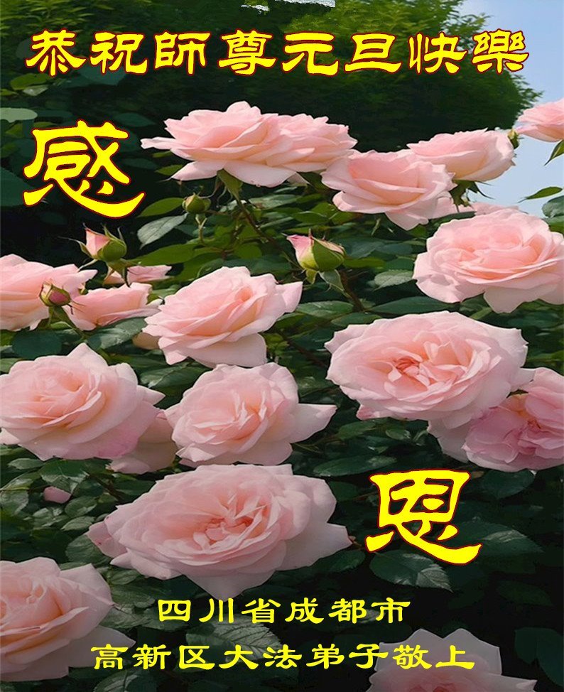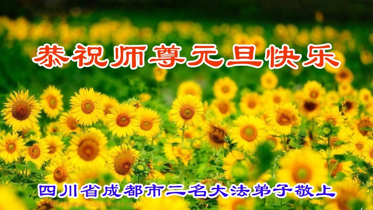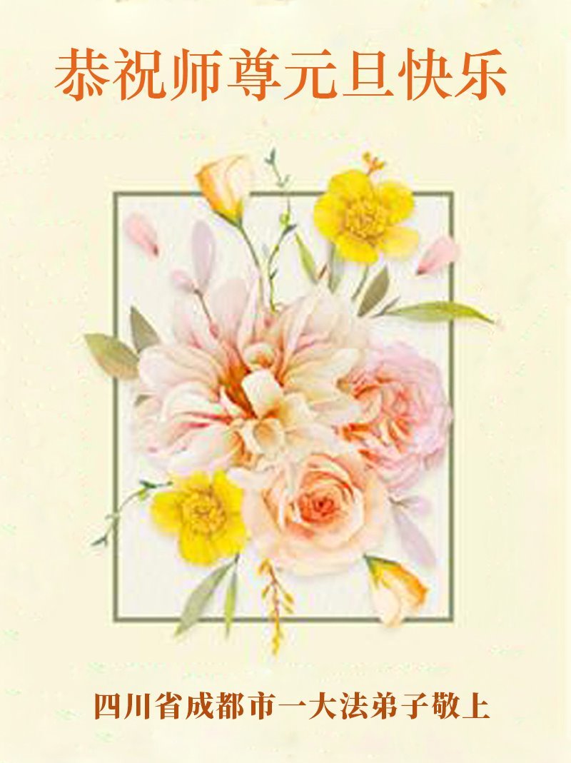 Seorang Praktisi, bersama dengan seorang Praktisi Baru di Kota Chengdu, Provinsi Chengdu, dengan hormat mengucapkan Selamat Tahun Baru kepada Guru!