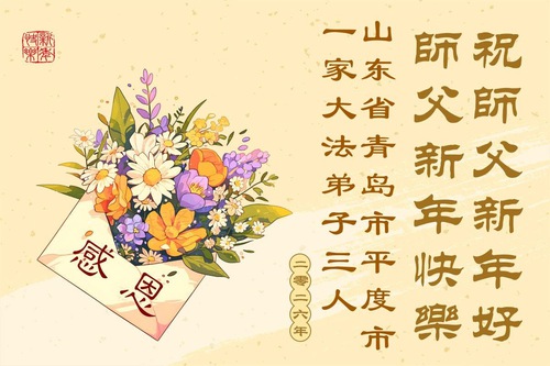 Praktisi Falun Dafa dari Provinsi Shandong Mengucapkan Selamat Tahun Baru kepada Guru Terhormat!