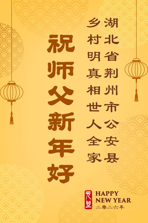 (Minghui.org) Menjelang Tahun Baru 2026, banyak praktisi Falun Dafa di daerah pedesaan Tiongkok dengan tulus mengucapkan selamat Tahun Baru kepada pendiri latihan ini, Guru Li Hongzhi.